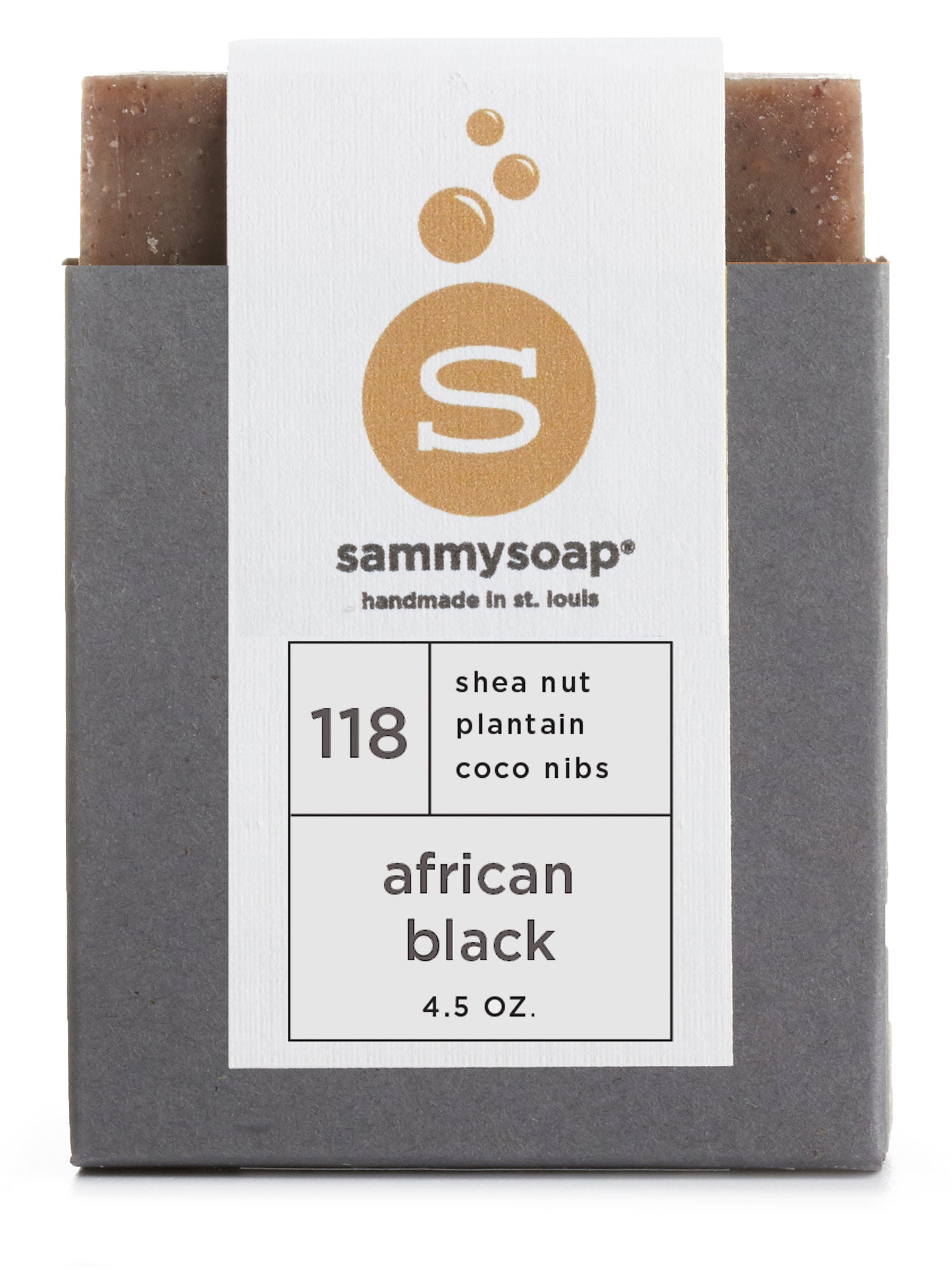 sammysoap African black is made with best quality organic African unrefined shea nut butter (Ghana), organic African raw cocoa nibs, African plaintain, and a dash of organic cinnamon from Madagascar. It's a handmade blend that's 100% all natural, vegan, and unisex. Excellent for face and body, all skin types. Deeply cleaning, conditioning, and deodorizing. The large molecules of shea nut butter stays in the top layers of skin to provide environmental protection. Recommended for sensitive and problem skin.