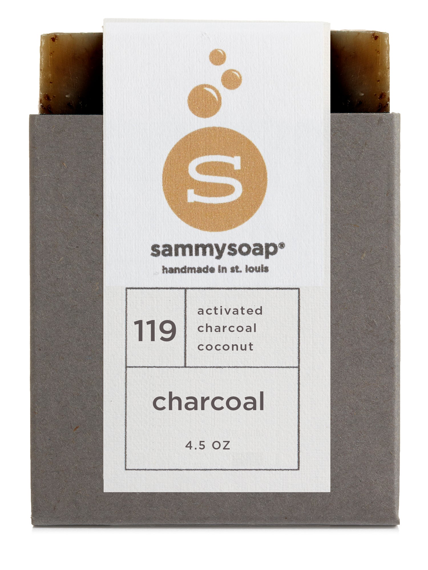 sammysoap charcoal soap is handmade in small batches. Unisex for face and body. Unscented. Excellent for all skin types. Lathers well, rinses clean. Ultra-moisturizing. Skin conditioning. Made in USA. St. Louis, Missouri.