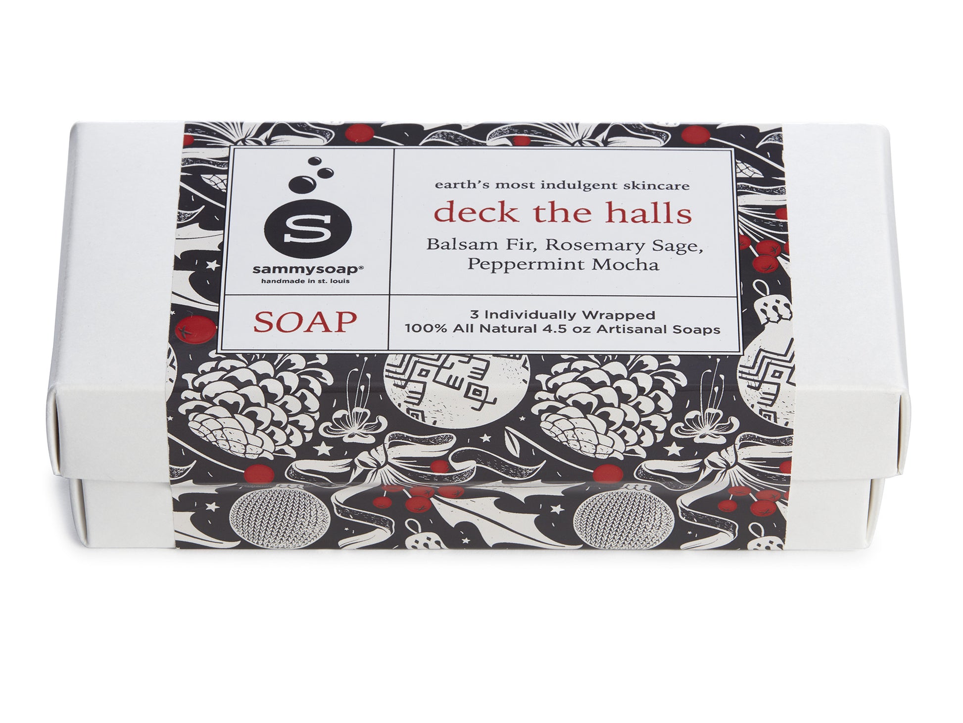 Three best selling individually wrapped 100% all natural 4.5 oz artisanal soaps in an attractive holiday gift box: