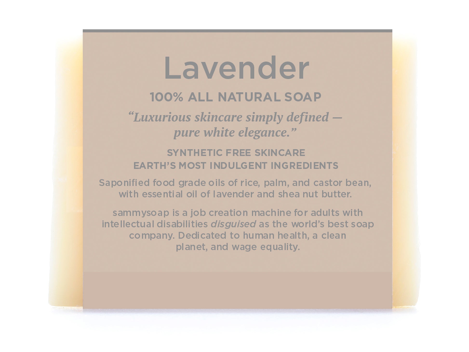 - sammysoap is a job creation machine for adults with intellectual disabilities disguised as the world's best soap company. The company exists in support of human health, a clean planet, and wage equality. Our mission is noted on every package. Disability rights are human rights. #bthechange
