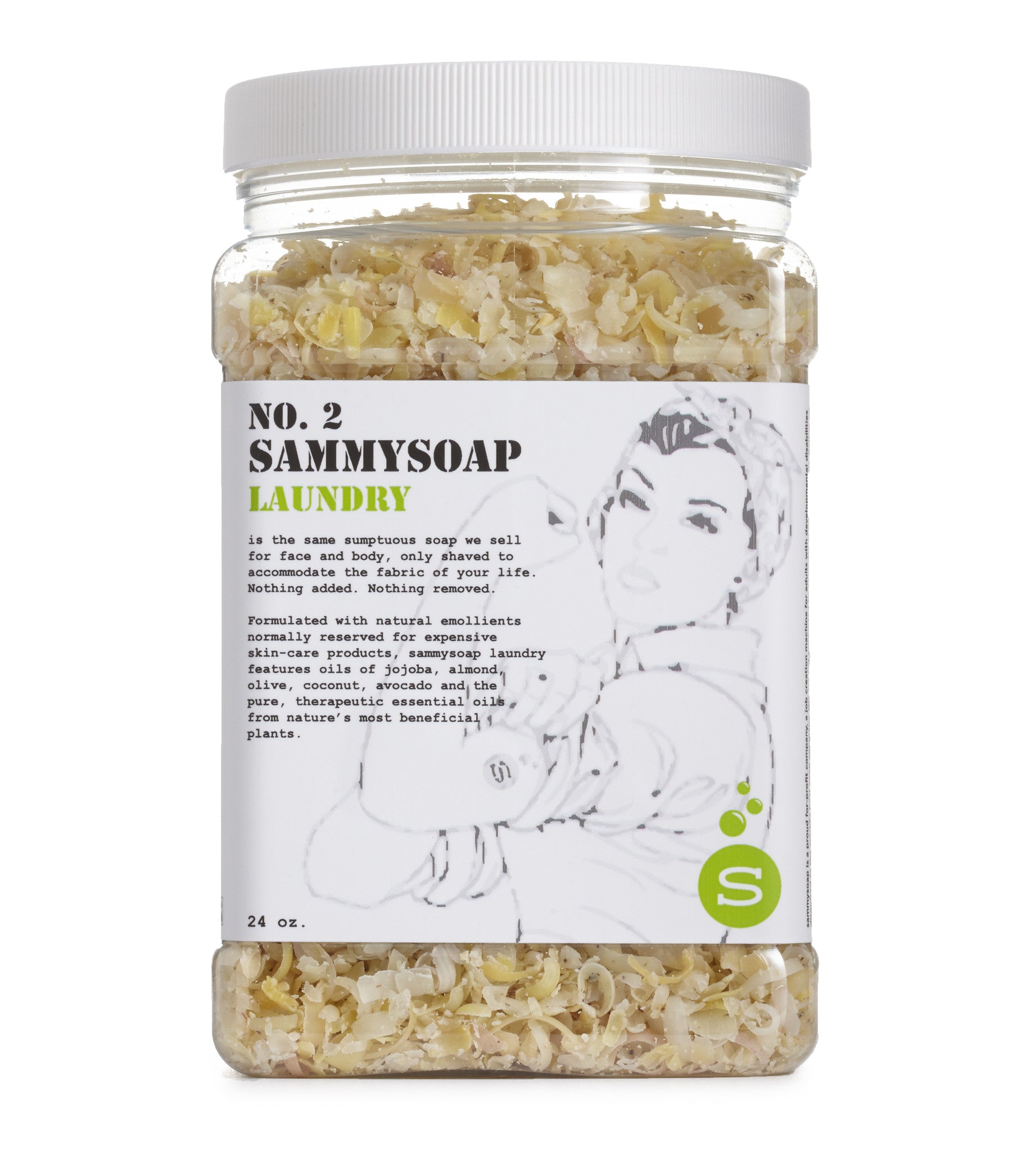 Nothing added. Nothing removed. sammysoap Laundry is the same sumptuous soap we sell for face and body, only shaved to accommodate the fabric of your life.